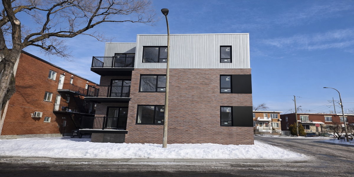 Projet de 8 logements, situé à Montréal, s’inscrivant dans une approche architecturale soignée qui conjugue durabilité, fonctionnalité et intégration urbaine. L’enveloppe du bâtiment se distingue par l’utilisation du revêtement Mini Norwood de Mac Métal Architectural combiné aux Panneaux composites du système S-10, offrant une esthétique contemporaine, une performance accrue et une solution fiable, parfaitement adaptée à un projet résidentiel à vocation collective.